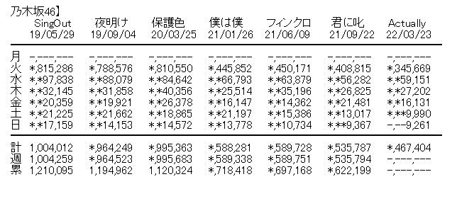 【悲報】乃木坂46「Actually….」6日目売上9,261枚で初動50万割れ決定