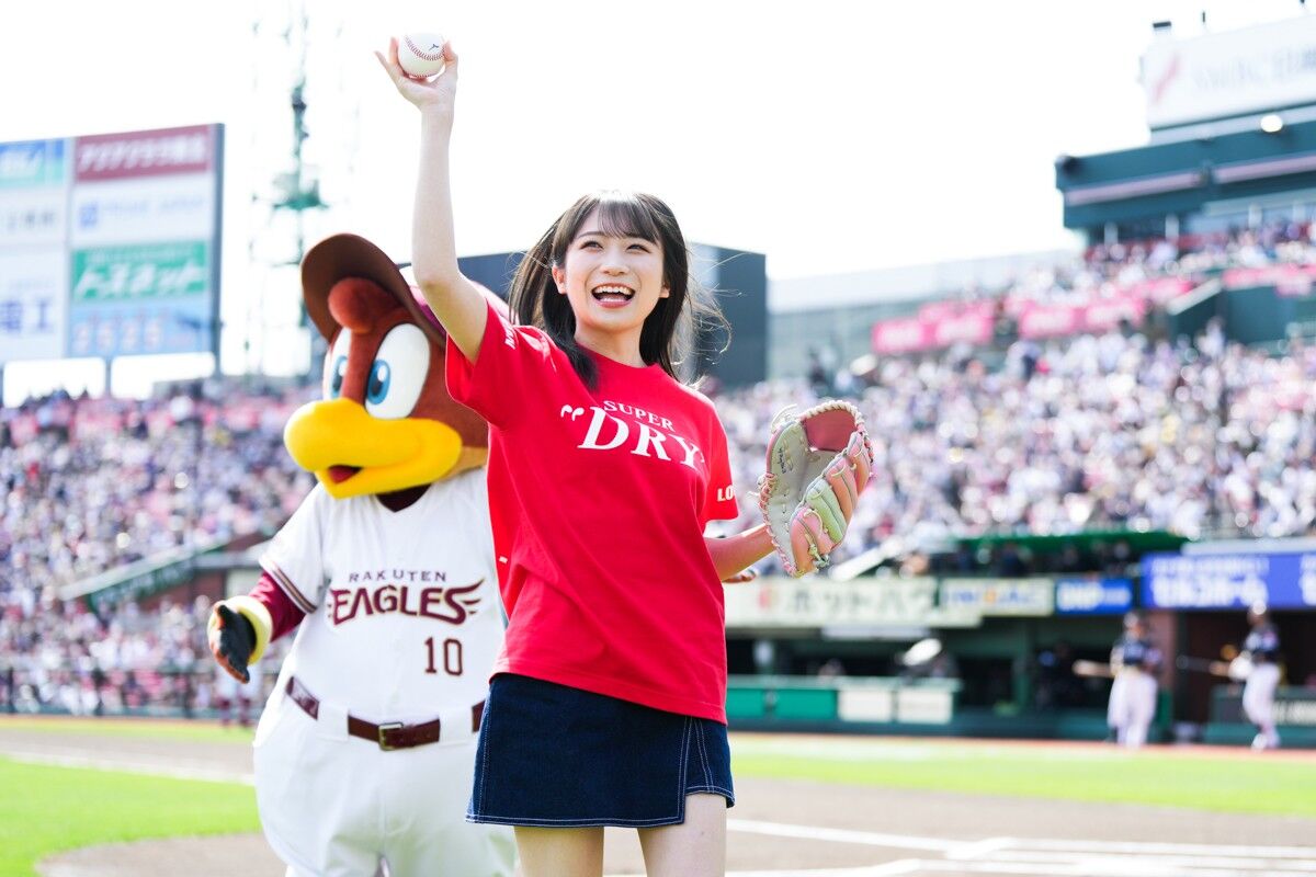 30日に行われた楽天-ソフトバンク戦の試合前に、アイドルグループ・乃木坂46のメンバー、秋元真夏さんが行った始球式が「可愛すぎかよ」「マジ天使じゃん」と注目を集めている。