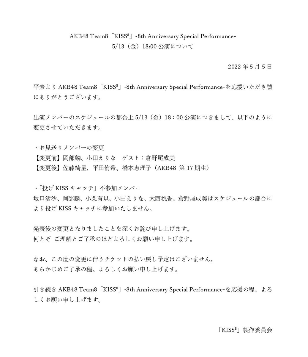 ・お見送りメンバー変更