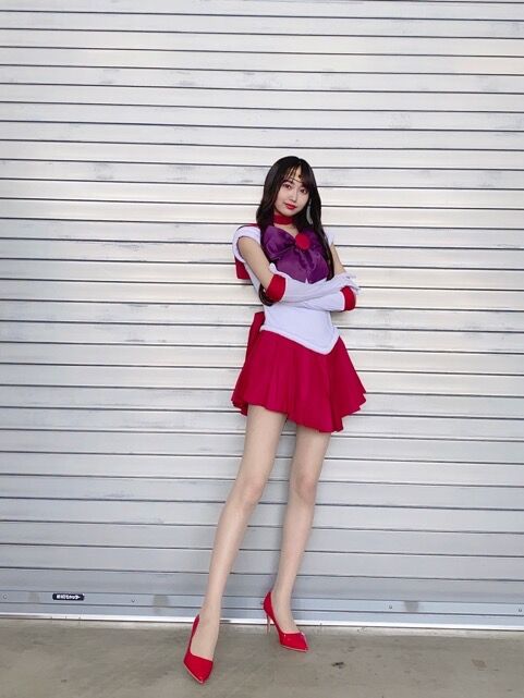 全身ショットではスラリと伸びた美脚を大胆に披露。