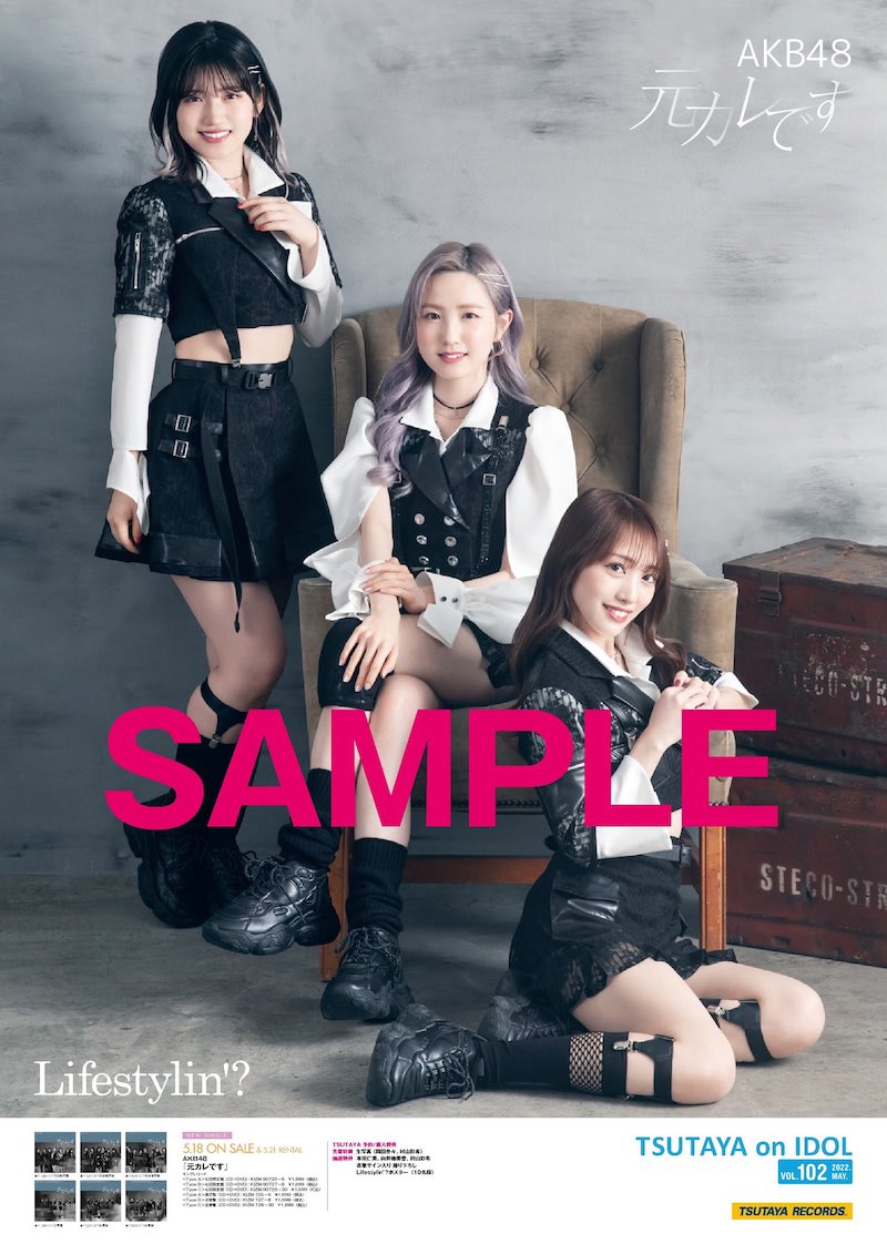 単品3Typeを全てご予約いただいてもポスターは付きませんのでご注意ください。②TSUTAYA RECORDS限定抽選特典全国のTSUTAYA RECORDS(一部店舗除く)にてAKB48 59thシングル「元カレです」を購入された方に先着で応募ハガキをプレゼントいたします。応募要項に沿ってご応募された方の中から抽選で下記特典いずれかをプレゼント!本田仁美、向井地美音、村山彩希 直筆サイン入りLifestylin’ポスター(5名様)【応募締切】2022年6月17日(金)当日消印有効