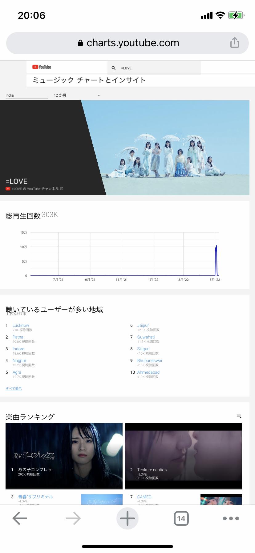 ②-① 0.011M インド(日本に次ぐ2位の再生数)