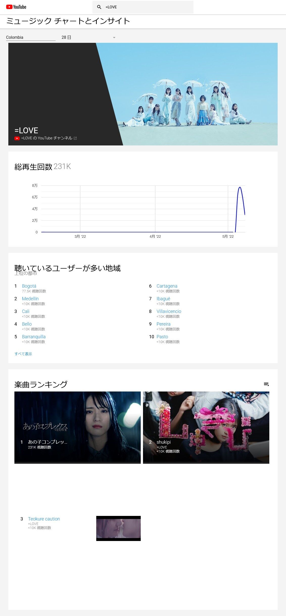 =LOVE youtube chart
