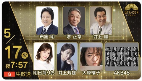 5/17 【今夜 19:57~放送】 AKB48・NHK 「うたコン」 出演!! 新曲『元カレです』 を発売前日に生パフォーマンス!!