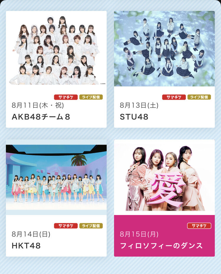 AKB、NMB、≠ME、=LOVE、Team8、STU、HKT
