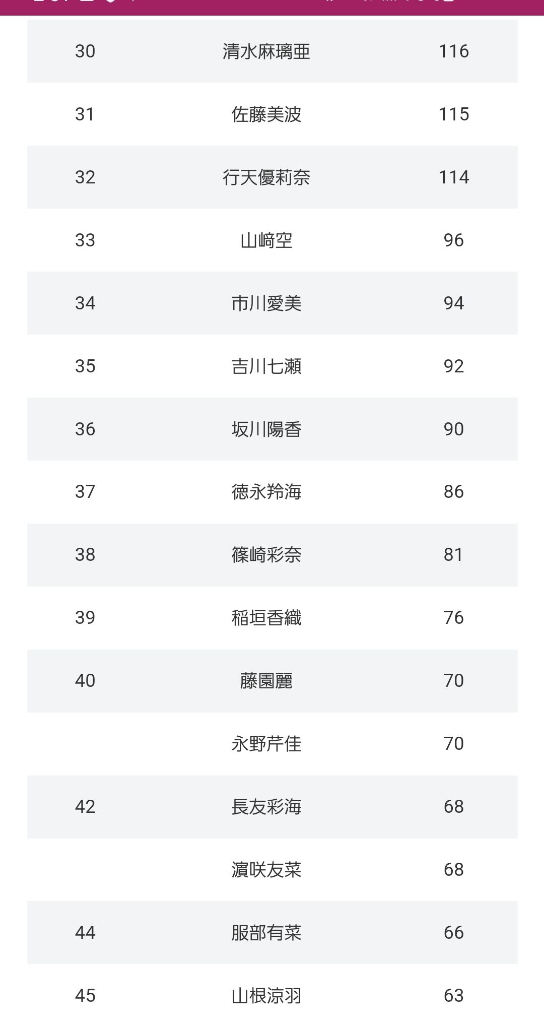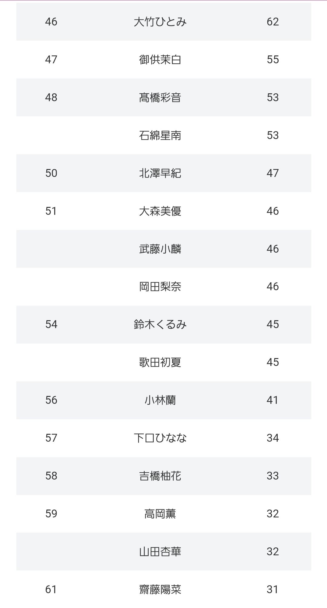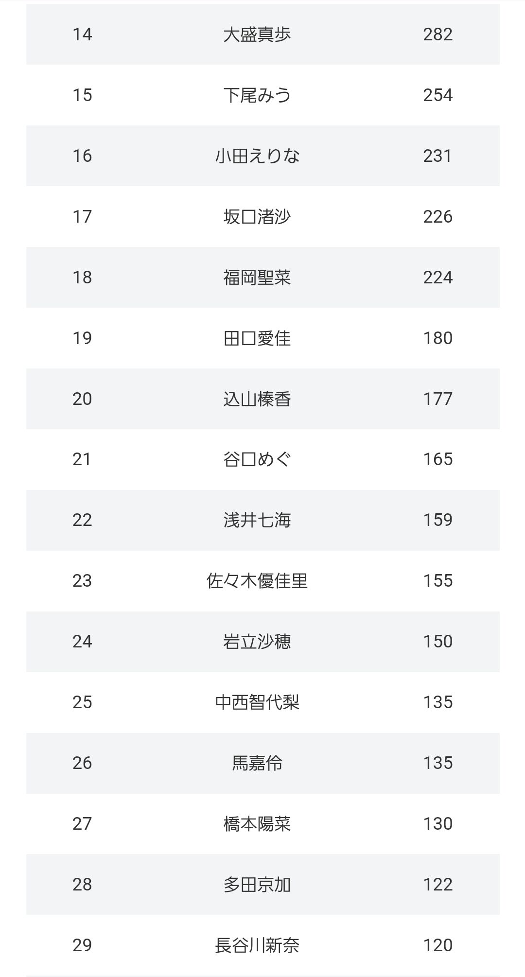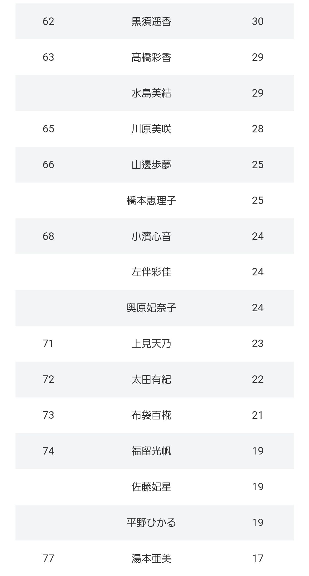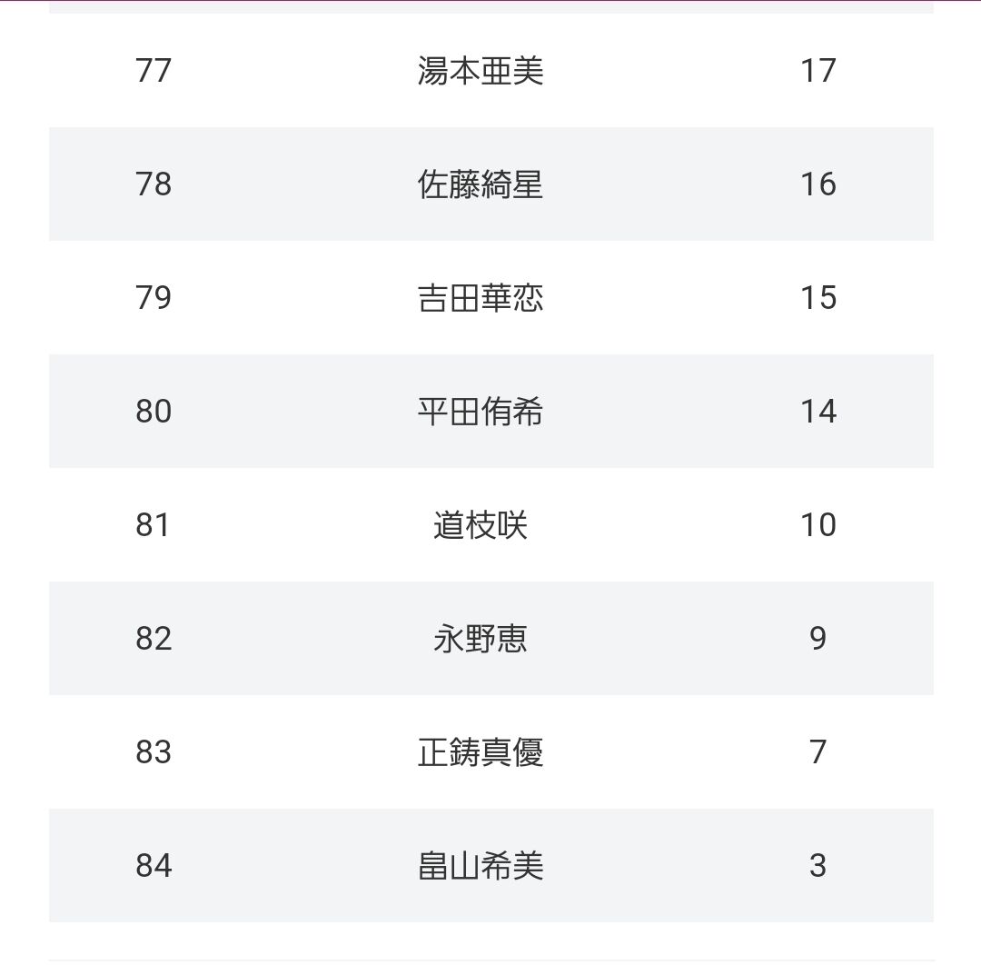 下位は最近加入した17期を除いて納得の順位だわ