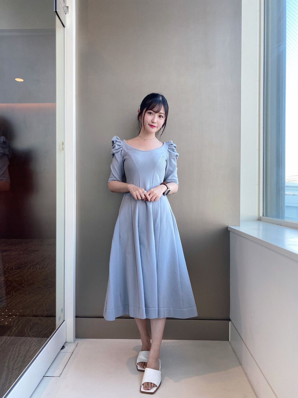 今日はシルエットのかわいくてそれでいて大人っぽい水色ワンピースでした~🐬🫧