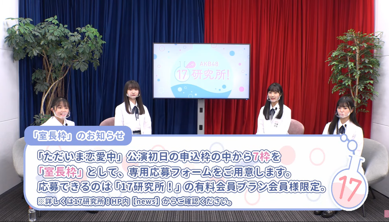 17期研究生「ただいま恋愛中」公演初日 有料プラン会員様限定申込枠のご案内