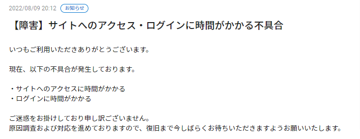 ログインの障害アナウンス出てるね