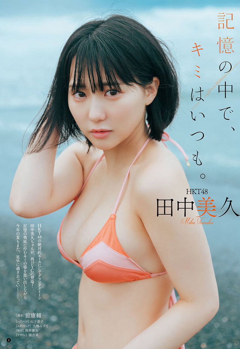 HKT48の田中美久さんが、23日発売の雑誌「ヤングチャンピオン」No.18(秋田書店)の表紙&巻頭グラビアに登場している。