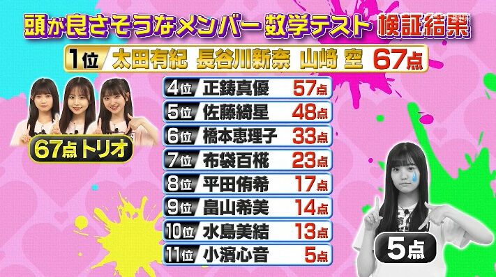 【AKB48】17期数学テストのランキングがこちら!こっこアホすぎわろたwwww