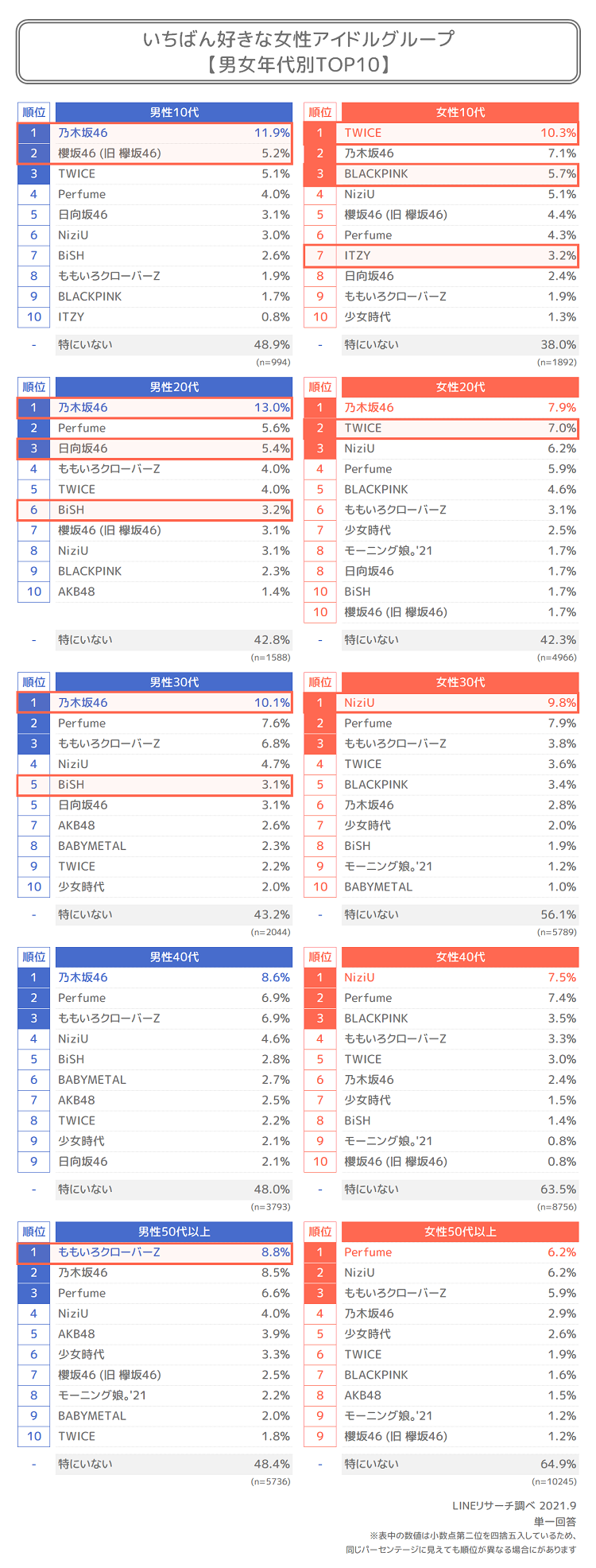 • 兎に角、はやりものに飛びつく、10代20代が、乃木坂の名前を上げたのが、10パーセントくらいしかないのは、乃木坂もすでに旬ではない、流行りではないことをはっきりと物語ってるよな。