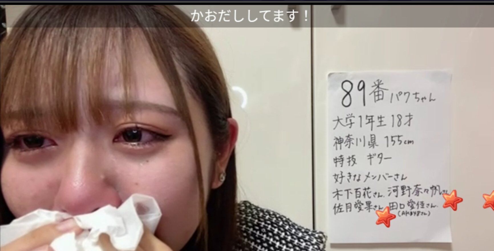 なんか、私のこと好きって言ってくれてる子がNMBのオーディションにいるみたいで見に行ったら泣いてくれて、自分の価値感じました。笑笑