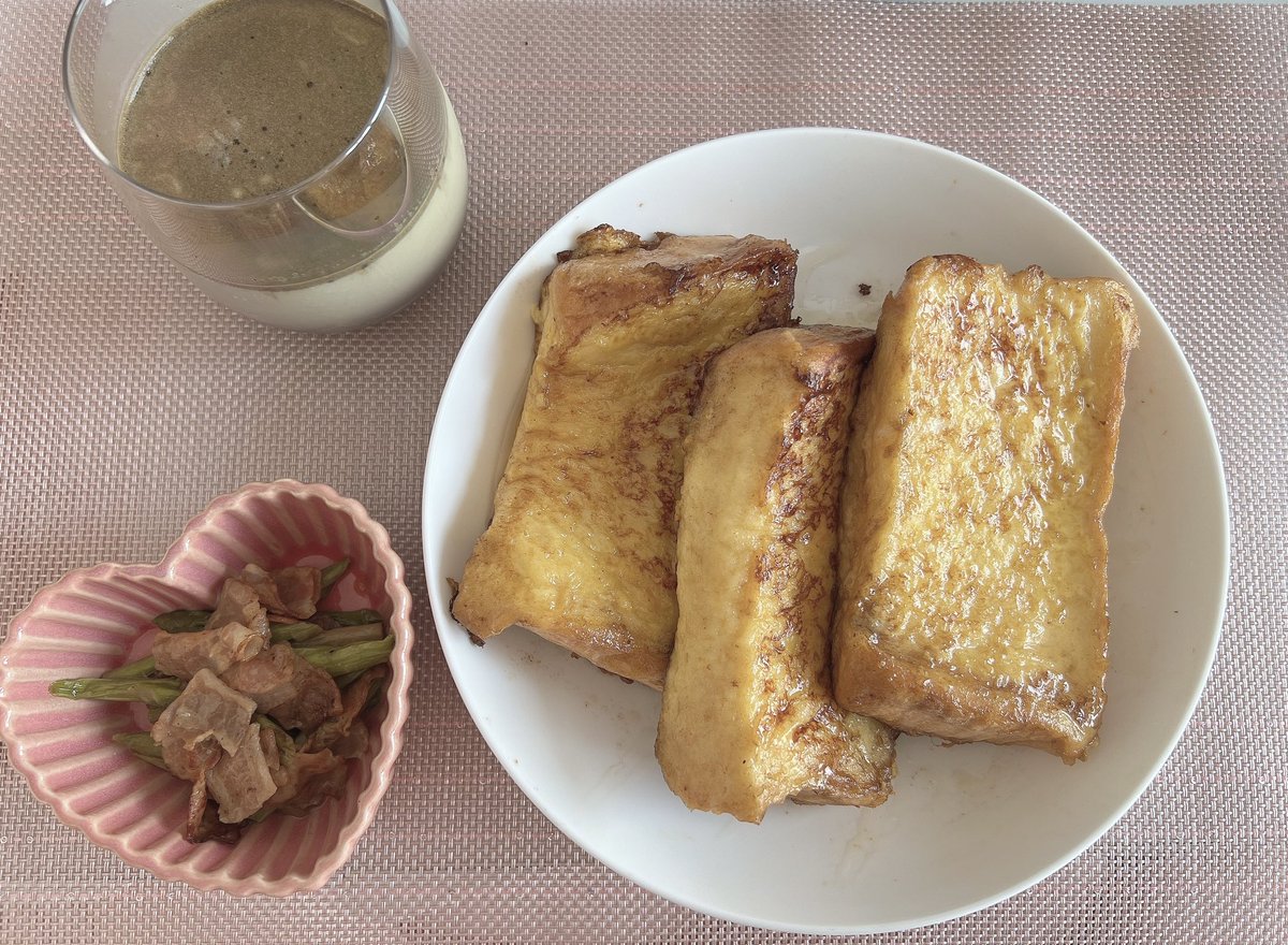今日は昨日の夜から準備していたフレンチトーストを朝ごはんにしました