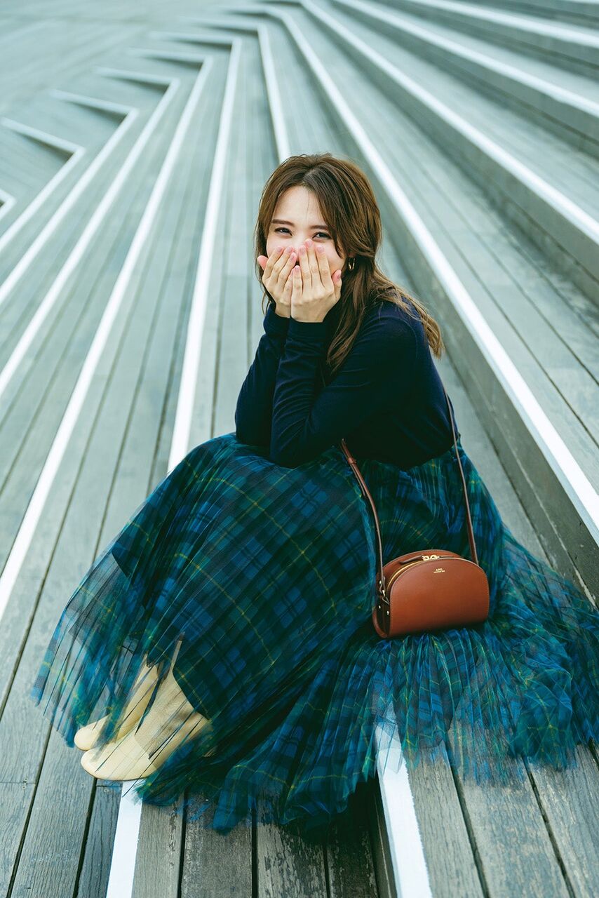 ほぼすっぴんのナチュラルメイクでふとこちらを見る自然体の表情に、普段の身支度を覗いたかのような気持ちになるショットとなっている。