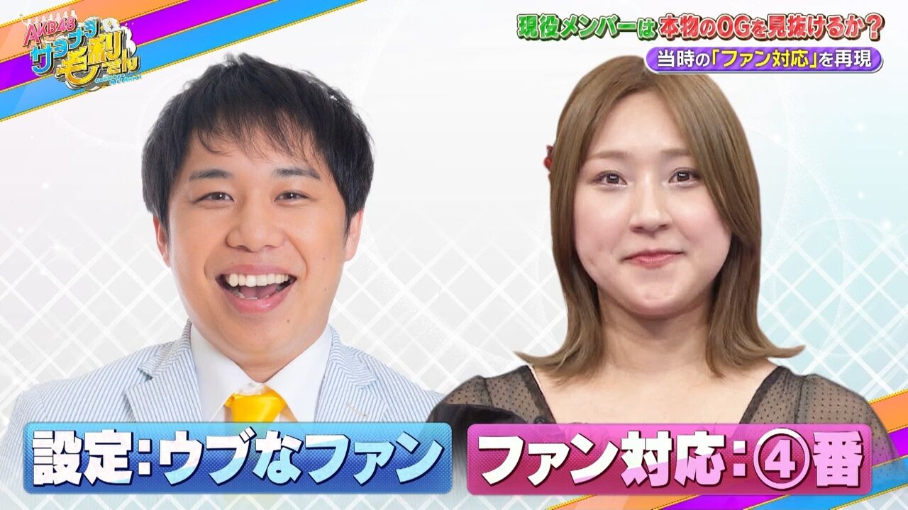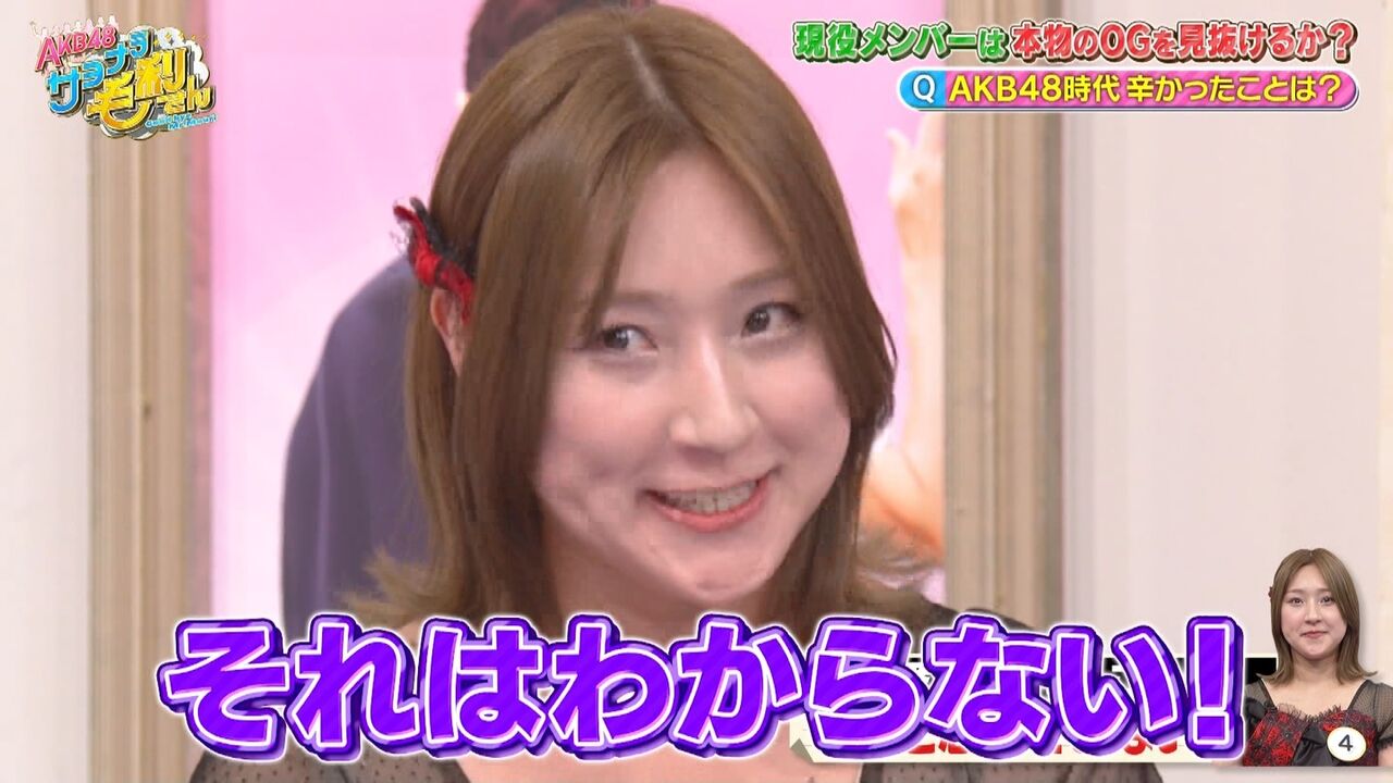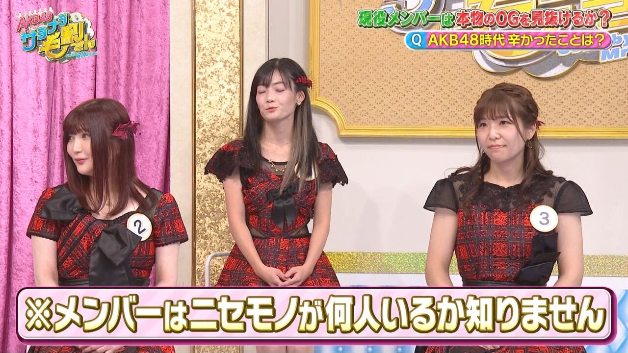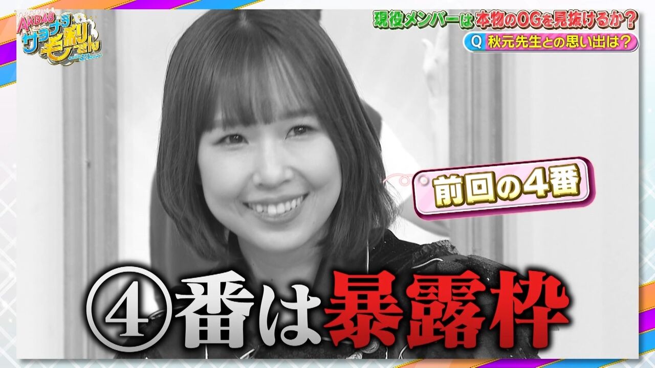 総勢約260人とも言われるAKB48のOGメンバー。今のAKB48があるのは歴史を作ってきたそんなたくさんのOGのおかげ!ということで、間違えたら超失礼!スタジオに登場する6人から本物のOGメンバーを見抜け!