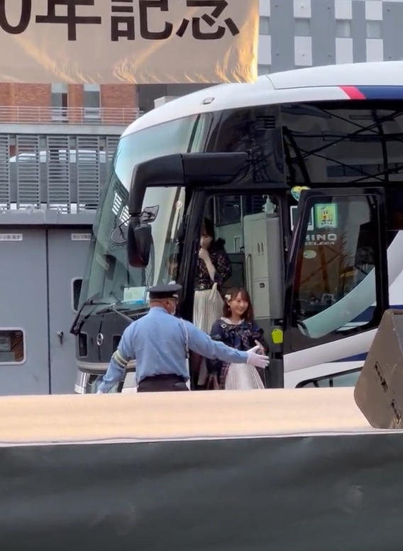 ステージの後ろに突然バスがバックで入ってきて、メンバーが降りてきたから、現場にいたヲタはみんな見てる