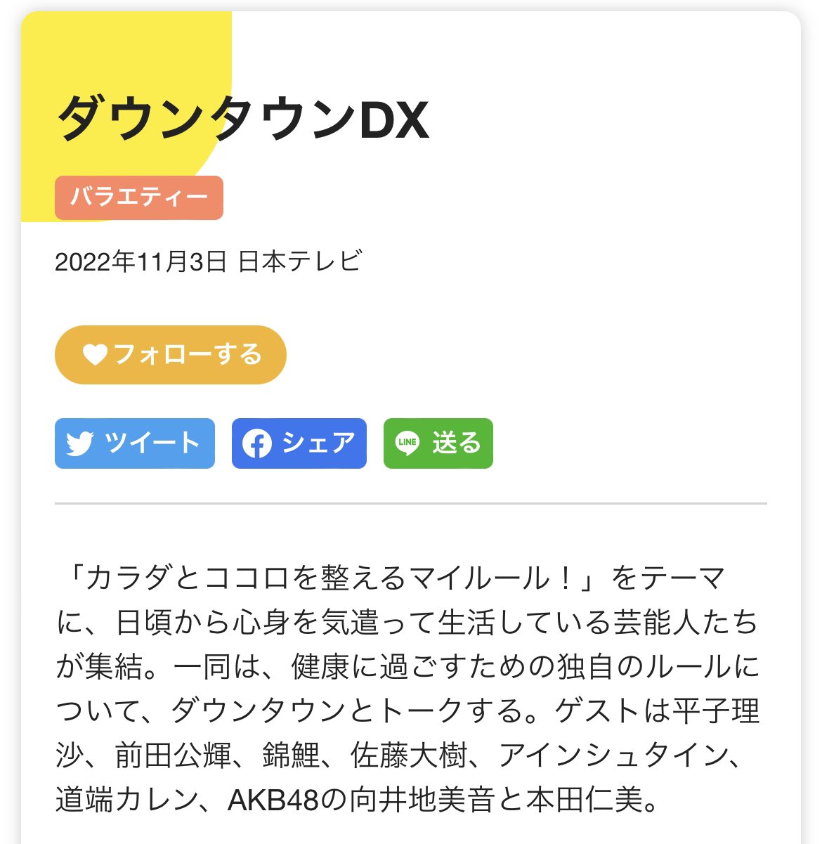 ゲストは平子理沙、前田公輝、錦鯉、佐藤大樹、アインシュタイン、道端カレン、AKB48の向井地美音と本田仁美。