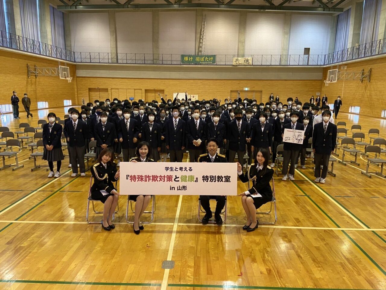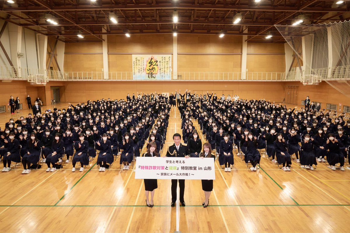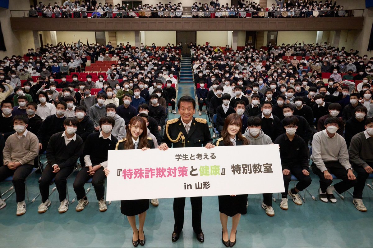 現在 #杉良太郎 対策監 #向井地美音 支援官 #武藤小麟 支援官が、山形南高校で特殊詐欺被害防止の特別教室を開催中です!