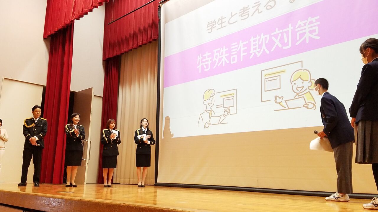 現在 #伍代夏子 支援官 #松本利夫 支援官 #坂口渚沙 支援官 #水島美結 支援官が米沢市立第七中学校で特殊詐欺被害防止の特別教室を開催中です!