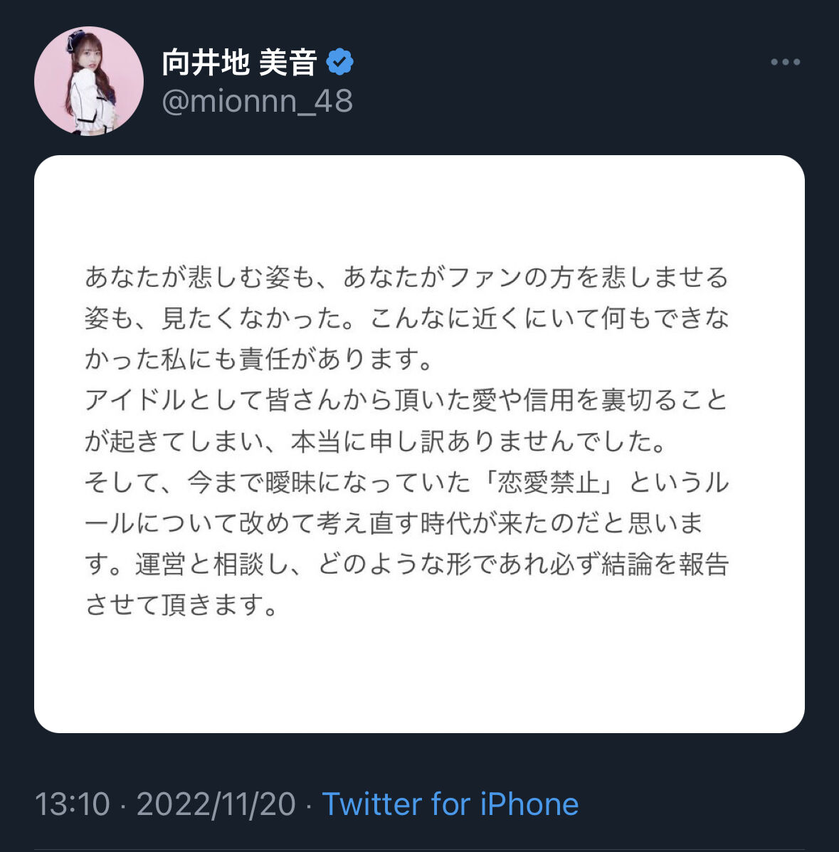 【速報】向井地美音総監督が岡田奈々スキャンダルで謝罪キタ━━━(゚∀゚)━━━!!!