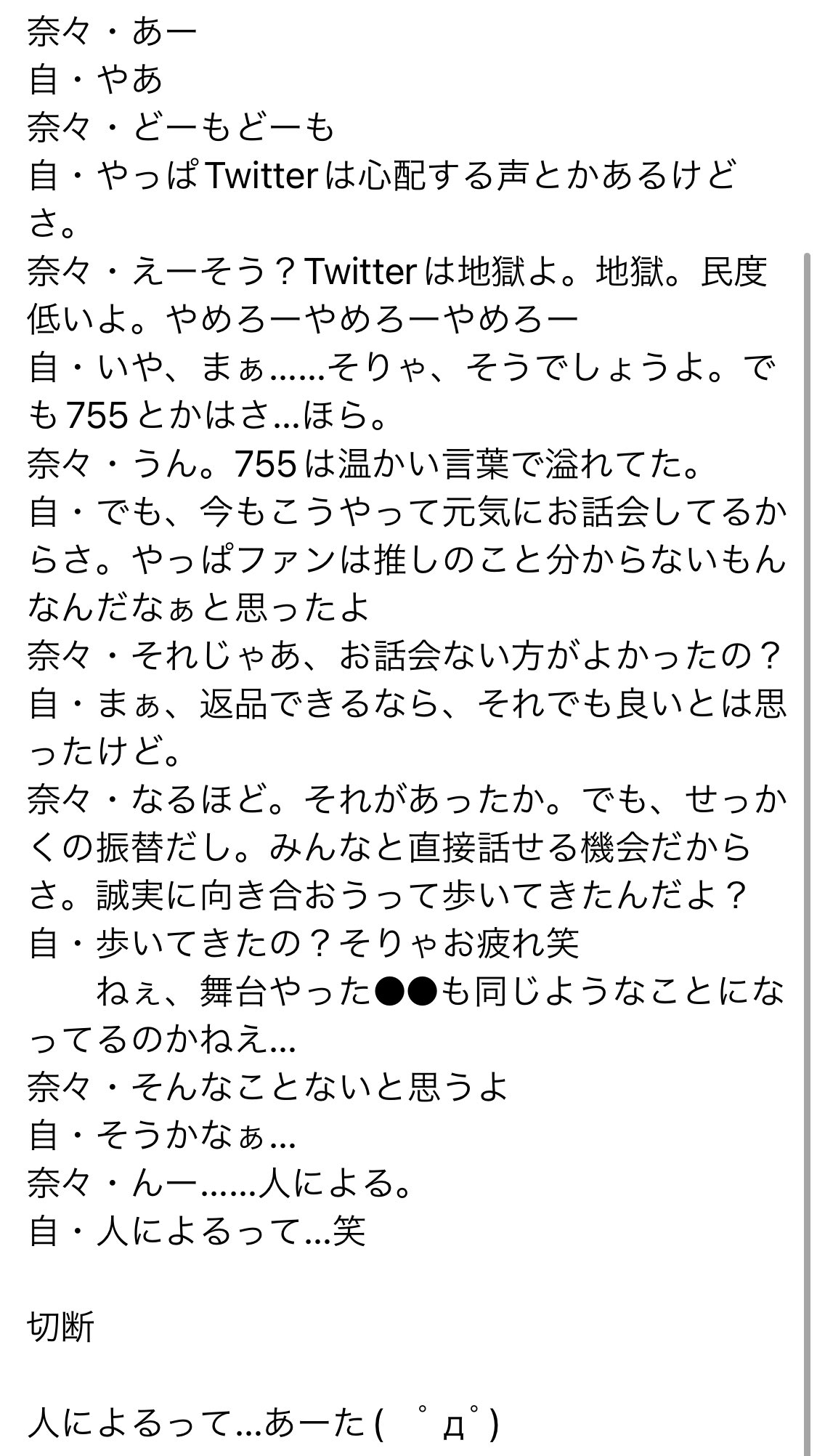 【うわぁ】本日の岡田奈々さんお話会レポがこちら・・・