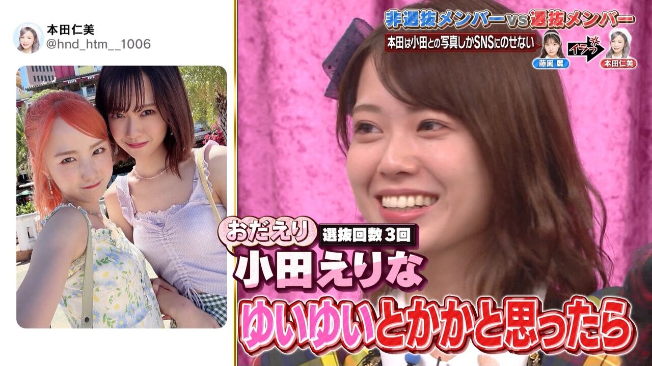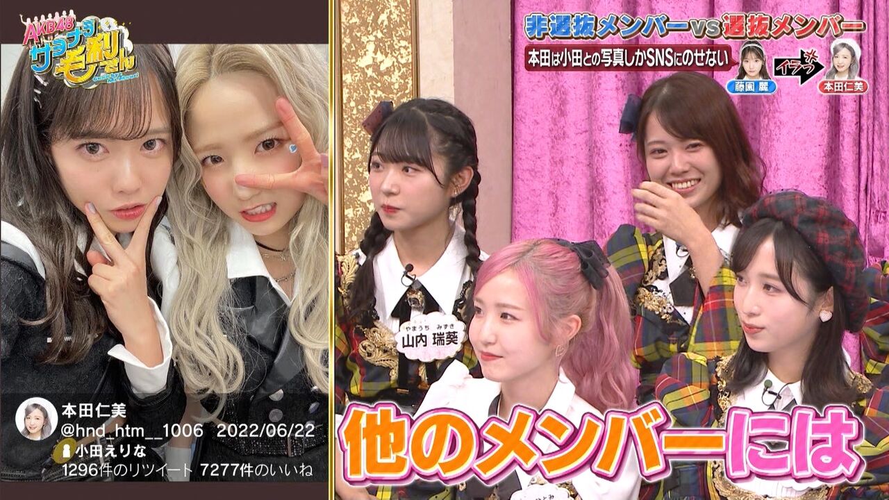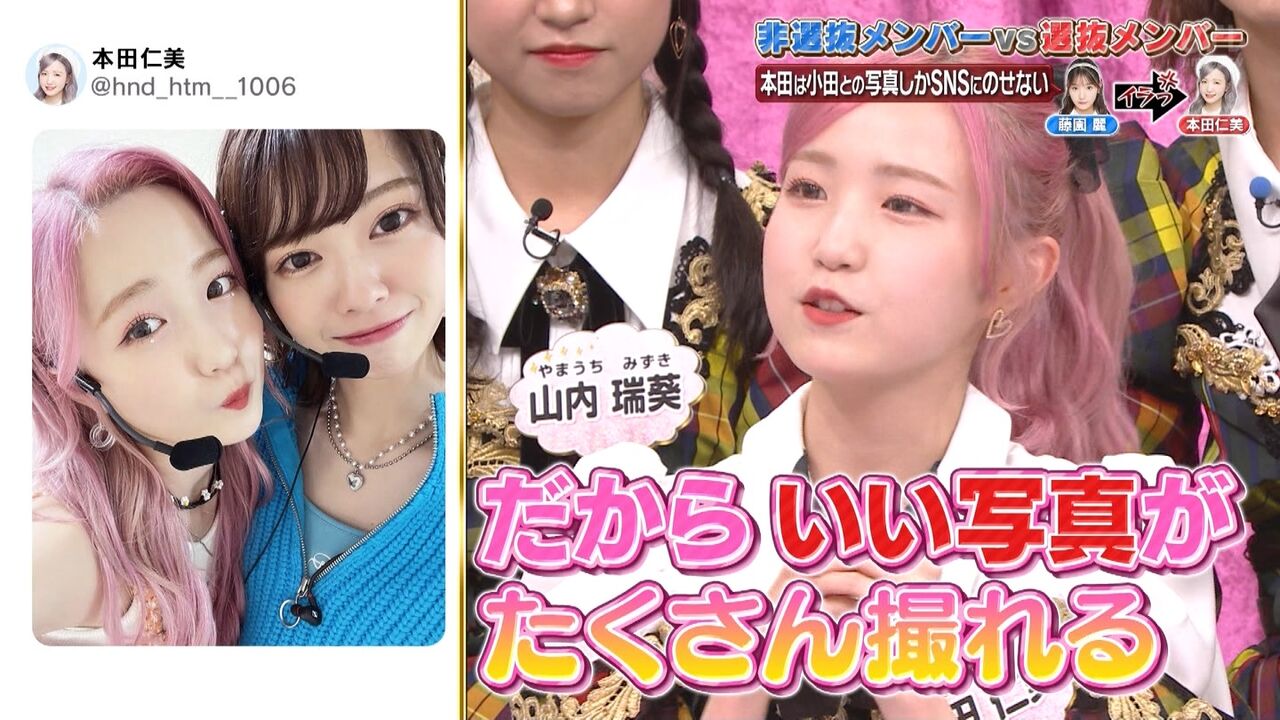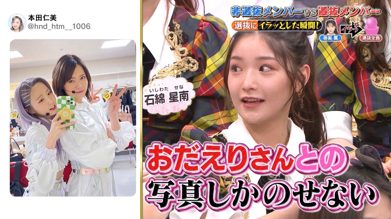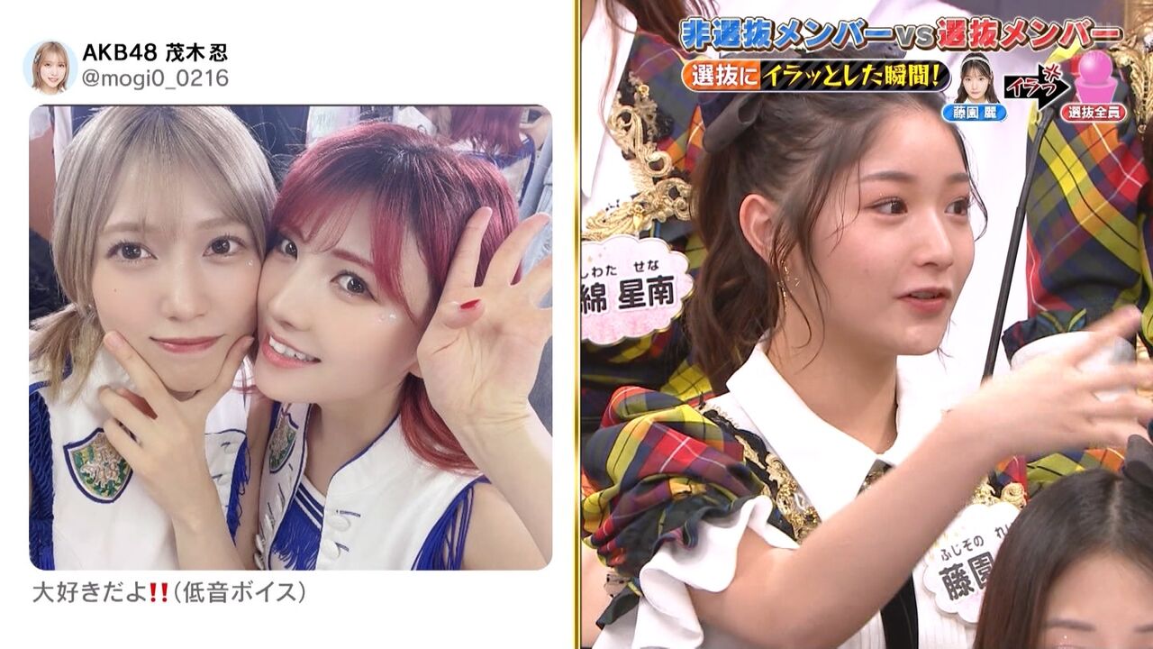 『SNS用の写真を一緒に撮ってくれない!!』『私のほうが○○が得意!!』など選抜メンバーへの不平・不満・熱い想いを直接ぶつける禁断企画!