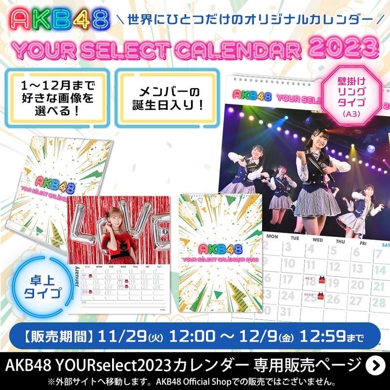 AKB48 YOURselect2023カレンダー A3壁掛けタイプ 4,900円(税込)