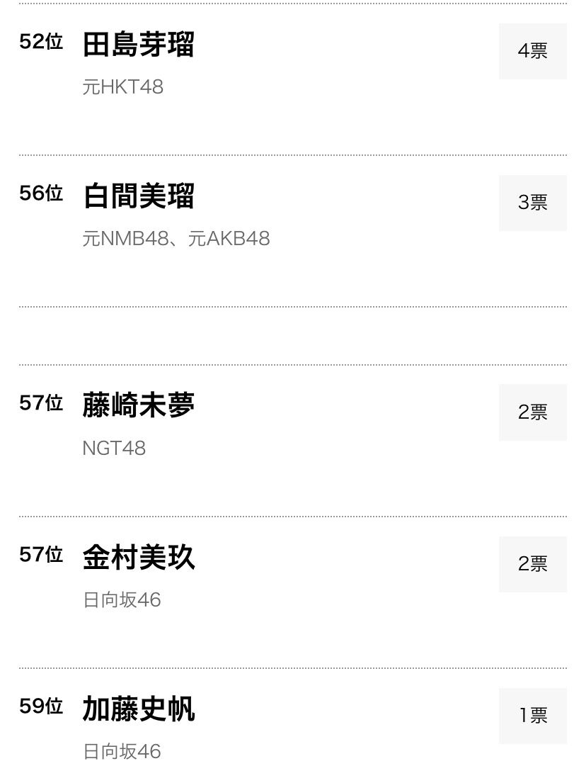 52位 岡田奈々(4票)低い…あれが影響?…