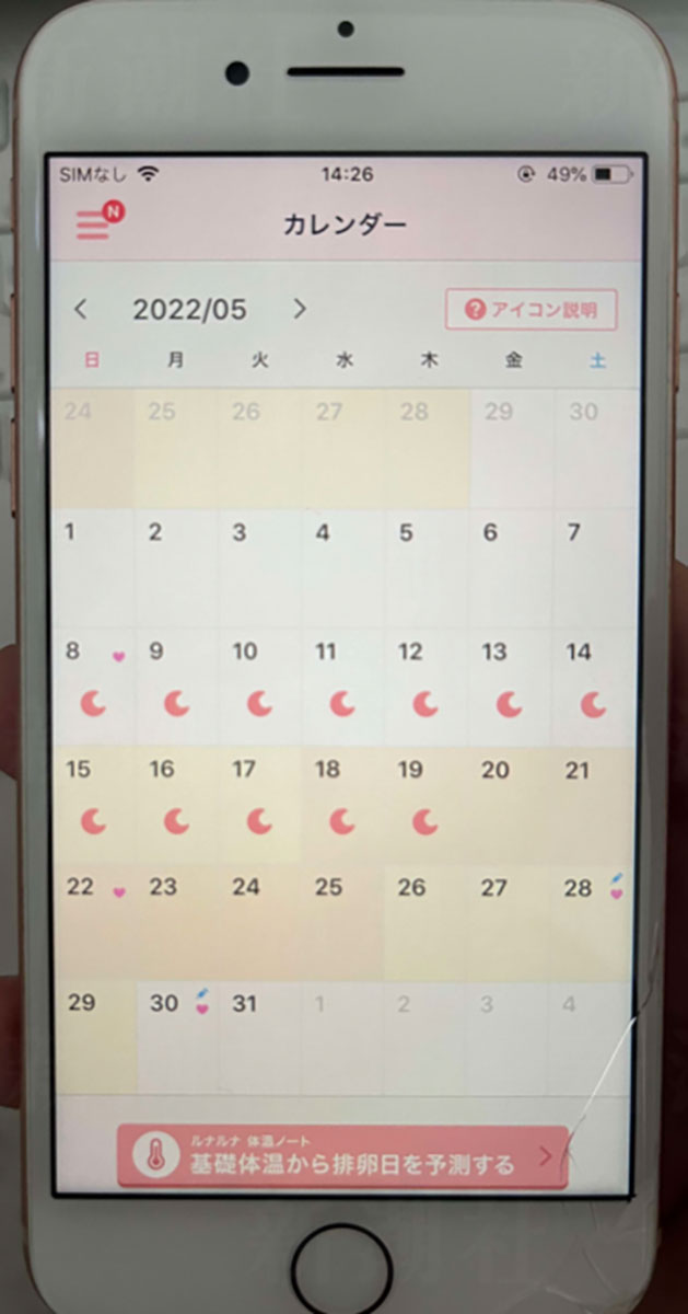 さらにA氏は篠田が利用していた月経周期管理アプリ「ルナルナ」のなかで、篠田がX氏との密会時につけていた「特別な印」まで押さえていた。