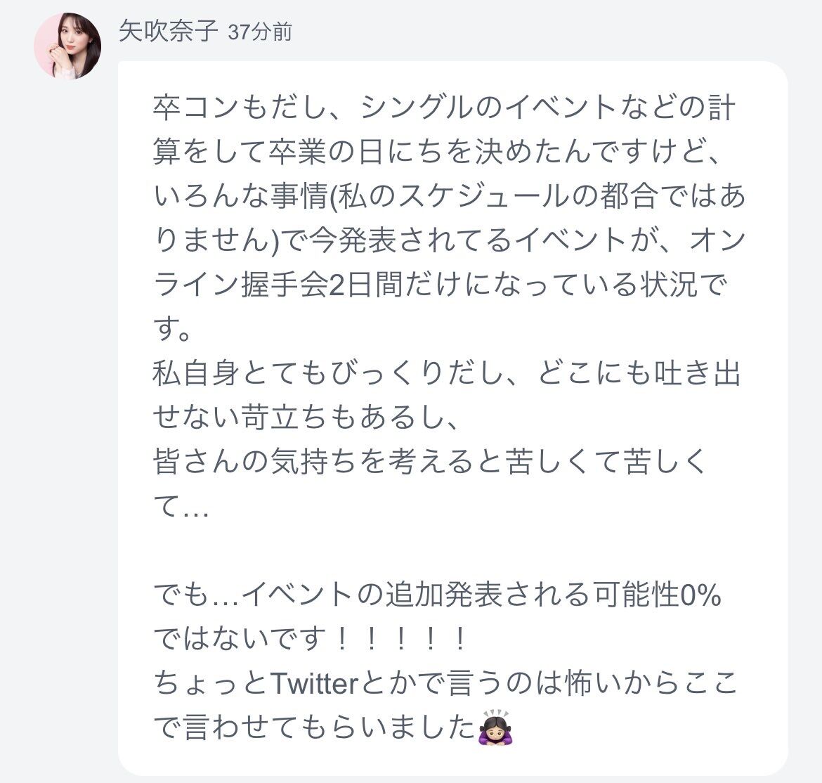 今週発表になったお話会とか含めてファンから悪評紛々らしいね