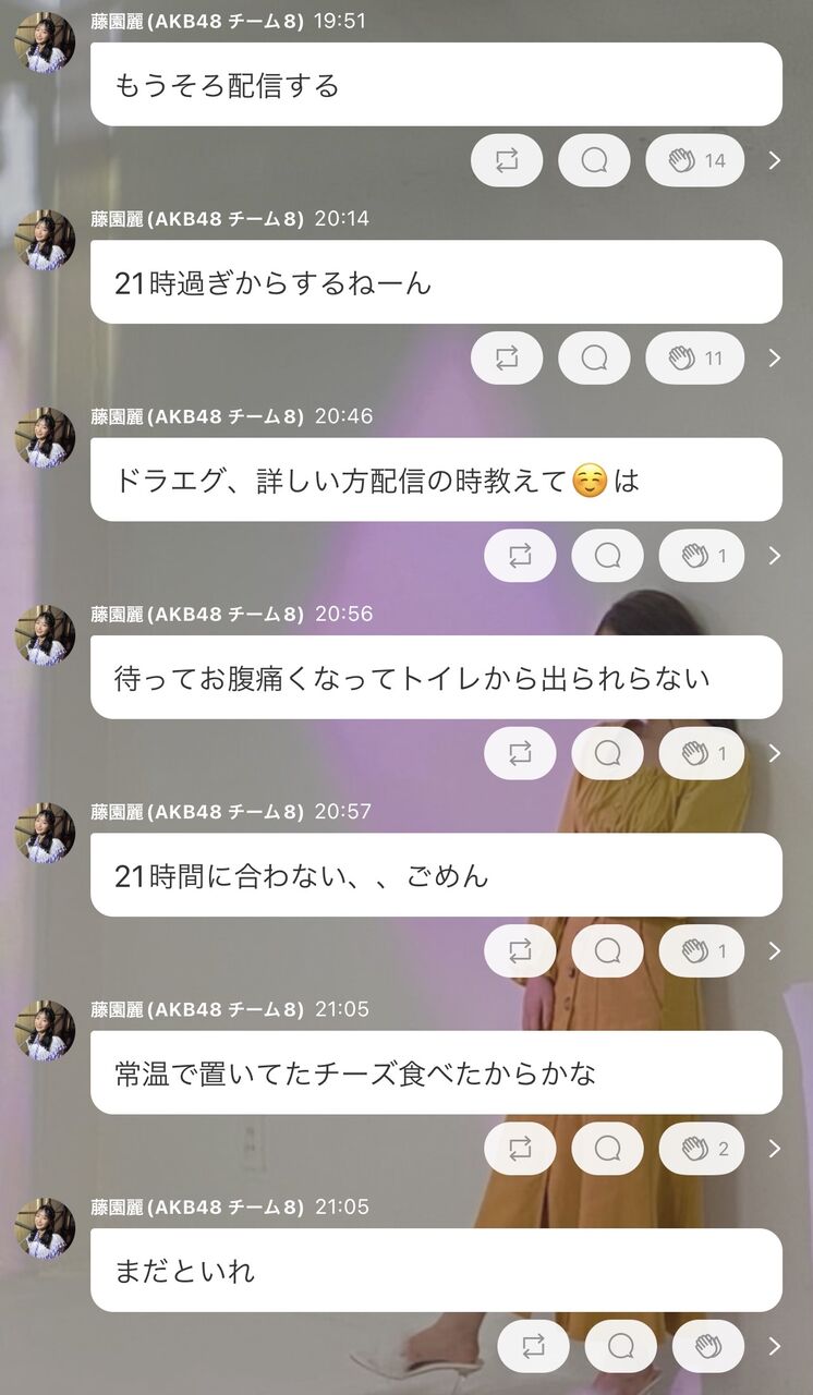 【悲報】藤園麗ちゃま、腹を壊してトイレから755