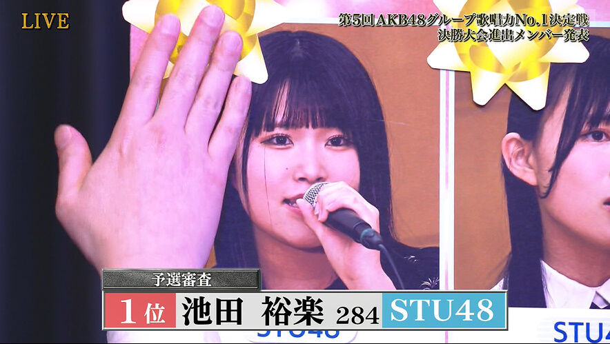 【悲報?】STU池田裕楽さん 2位村山に8ポイント差をつけ予選ぶっちぎり1位