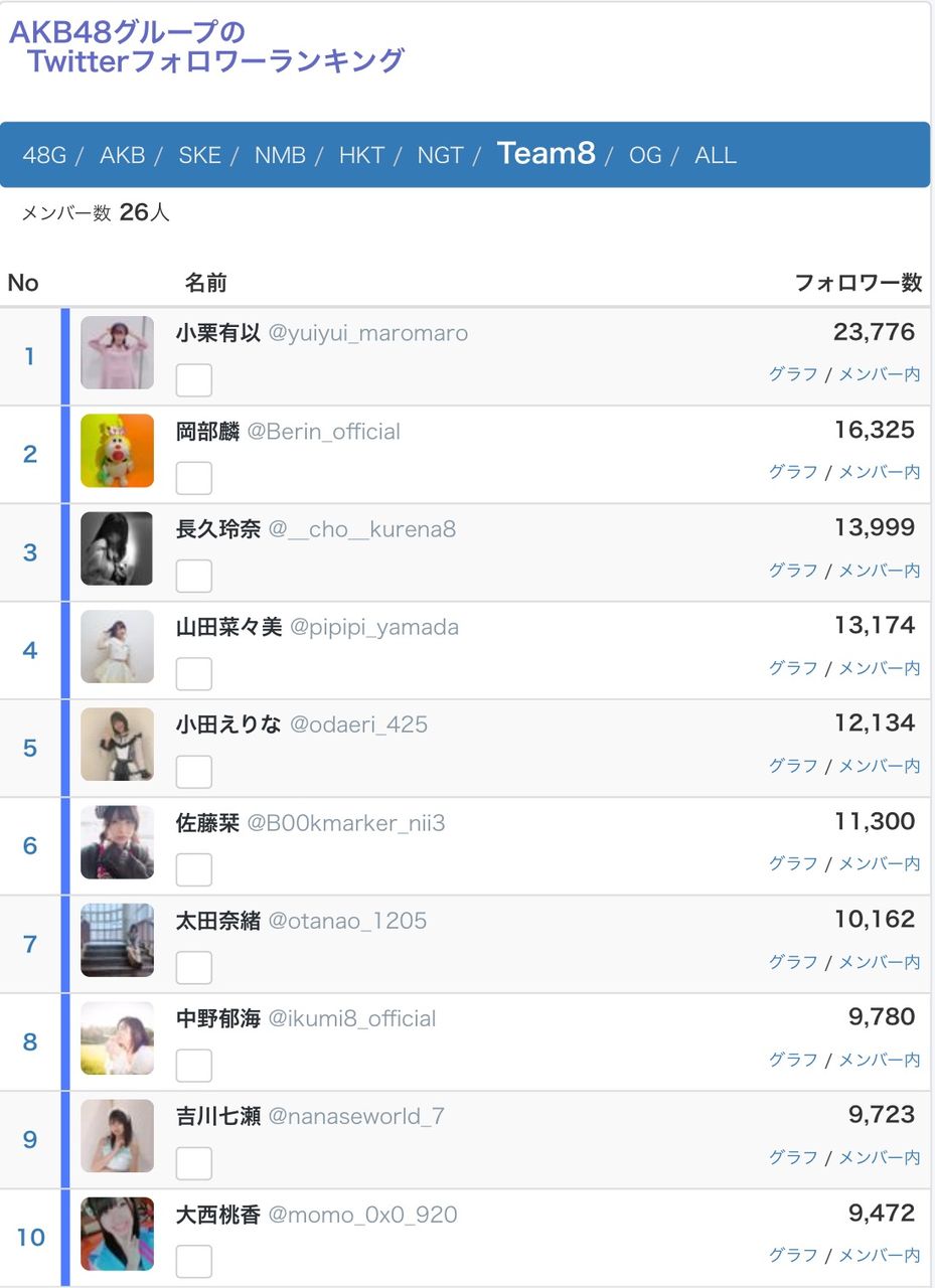 引用元:【速報】Twitterを始めたチーム8メンバーの実人気が判明!!!