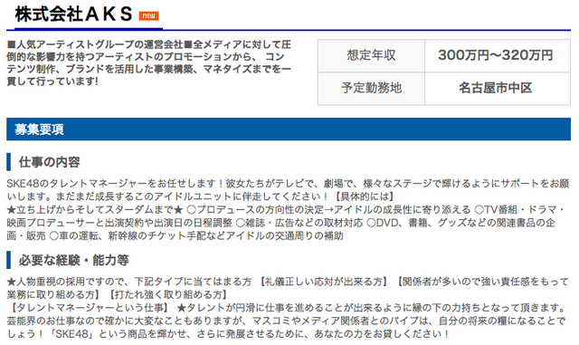 前にSKEのマネージャー募集してた時は