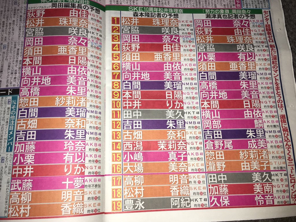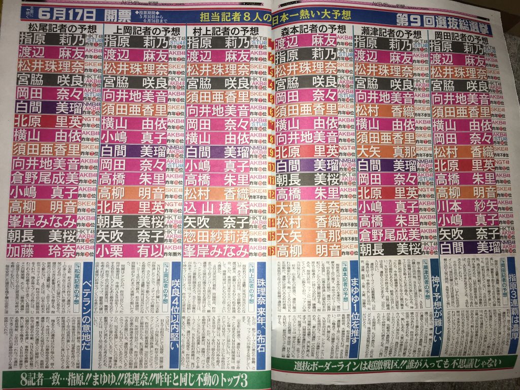 【画像あり】今年のAKB新聞の総選挙予想がこちら!!!【53rdシングル世界選抜総選挙】