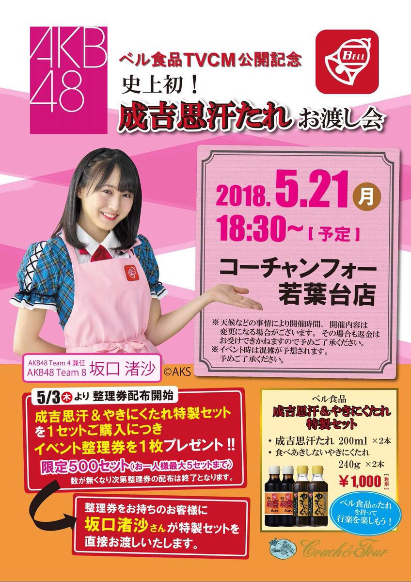 【チーム8】坂口渚沙が史上初「焼肉のタレお渡し会」を開催!!!本日より整理券配布開始!