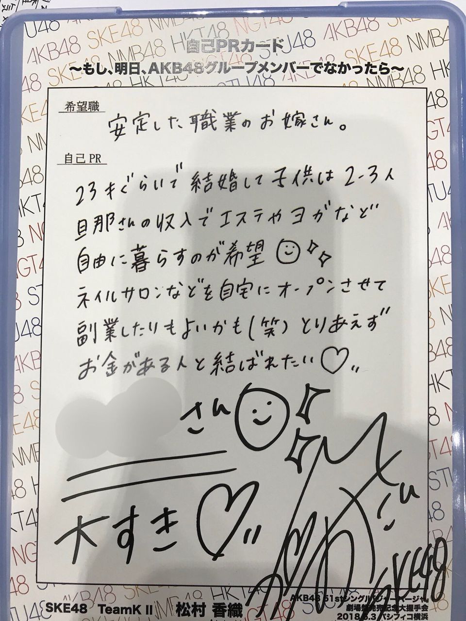 これにサイン付けて抽選の特典です