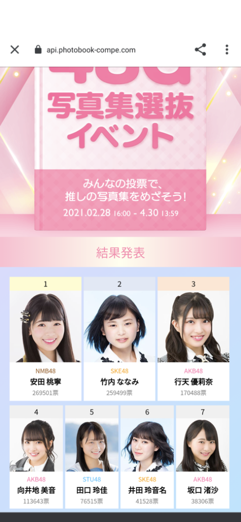 【48G写真集選抜イベント】最終結果が発表!向井地美音は惜しくも4位に・・・